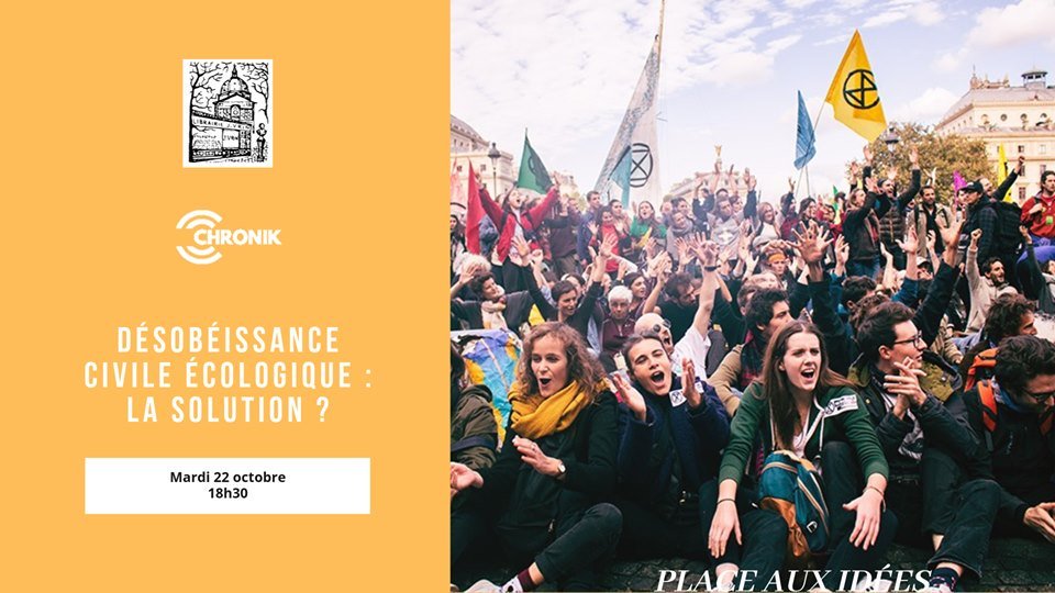 Le mardi 22 octobre, nous rencontrons Albert Ogien, sociologue spécialiste de la désobéissance civile, auteur avec Sandra Laugier de Pourquoi désobéir en démocratie ? (La découverte, 2011) et Le principe démocratique. Enqûete sur les nouvelles formes du politique (La découverte, 2014) pour aborder la spécificité de la désobéissance civile écologique actuelle, ses perspectives et son rôle dans la démocratie. Claire Lejeune, co-secrétaire fédérale des Jeunes Écologistes, membre du collectif des Décrocheuses du mouvement Extinction Rebellion, viendra partager son expérience militante et compléter cette rencontre.